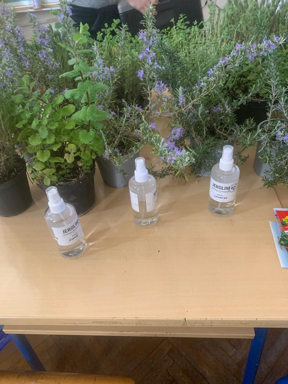 Ovo je bila prilika i za upoznavanje blagodati biljaka kroz aroma terapiju. Svo vrijeme radionice prostor učionice osvježavali su mirisna eteričnih ulja kroz mini difuzore od drva i terakote. Isprobali smo i kako mirišu cvjetne vodice - hidrolati od začinskog otočnog bilja.